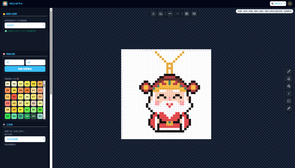 内置 Hama、Artkal、Nabbi 色号,图纸与实物更一致。